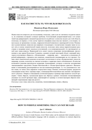 МИХАЙЛОВ И. Ф. КАК НАСВИСТЕТЬ ТО, ЧТО НЕЛЬЗЯ ВЫСКАЗАТЬ // ВЕСТНИК ПЕРМСКОГО УНИВЕРСИТЕТА. ФИЛОСОФИЯ. ПСИХОЛОГИЯ. СОЦИОЛОГИЯ. 2024. № 2