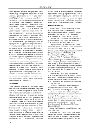 Ключевые фразы: личностный язык, МЕТАФОРА, образ, наука, искусство, перенос значений, харьковская лингвистическая школа, контекст, ТАКСОНОМИЯ, классификация