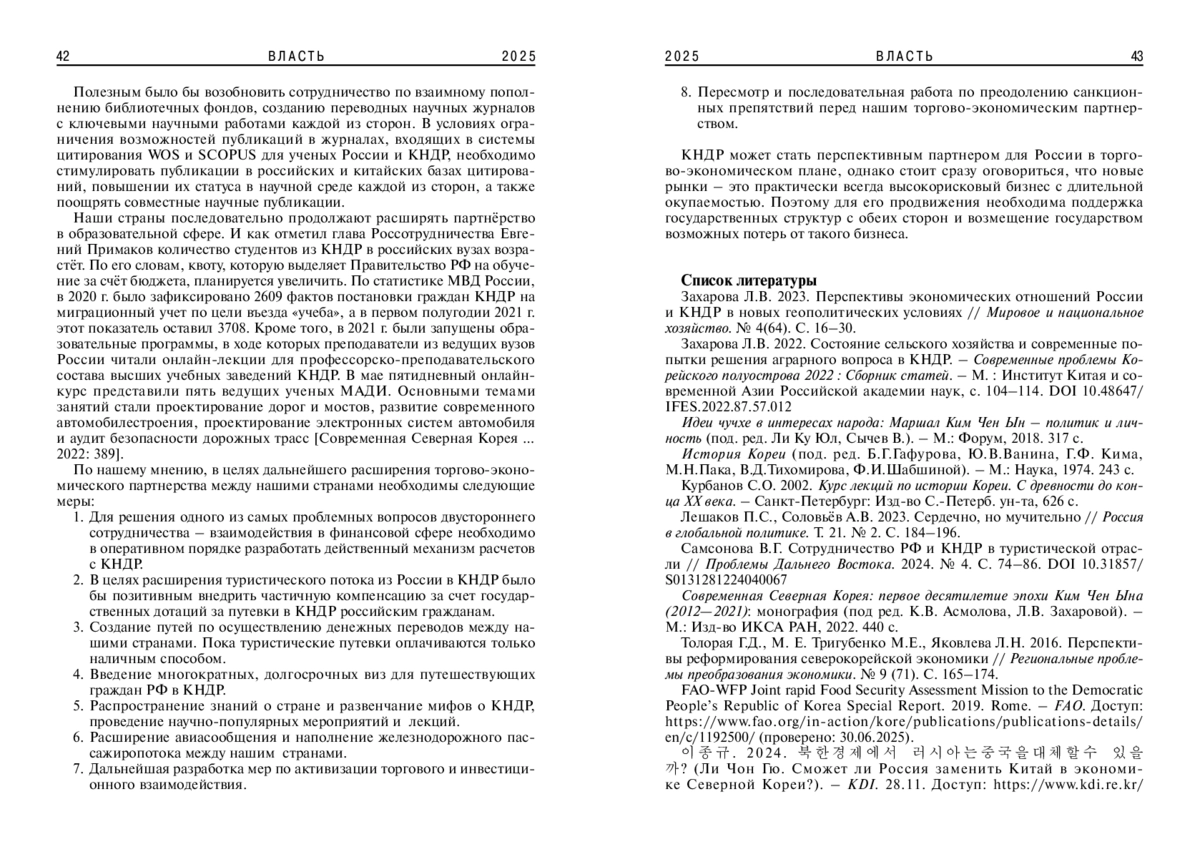 САМСОНОВА В. Г. ТОРГОВО-ЭКОНОМИЧЕСКОЕ СОТРУДНИЧЕСТВО РОССИИ И КНДР НА СОВРЕМЕННОМ ЭТАПЕ // ВЛАСТЬ. 2025. ТОМ 33 № S4
