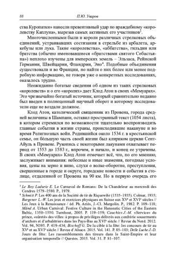 3. Уваров П.Ю. Клод Атон - бытописатель французской смуты // Французское общество в эпоху культурного перелома: От Франциска I до Людовика XIV / под ред. Е.Е. Бергер и П.Ю. Уварова. М., 2008. С. 91-103. (Приложение к журналу “Средние века”; Вып. 3).