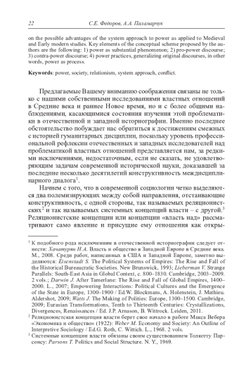 Предлагаемые Вашему вниманию соображения связаны не только с нашими собственными исследованиями властных отношений в Средние века и раннее Новое время, но и с более общими наблюдениями, касающимися состояния изучения этой проблематики в отечественной и западной историографии. Именно последнее обстоятельство побуждает нас обратиться к достижениям смежных с историей гуманитарных дисциплин, поскольку уровень профессиональной рефлексии отечественных и западных исследователей над проблематикой властных отношений представляется нам, за редкими исключениями, недостаточным, если не сказать, не удовлетворяющим задачам современной исторической науки, доказавшей за последние несколько десятилетий конструктивность междисциплинарного диалога