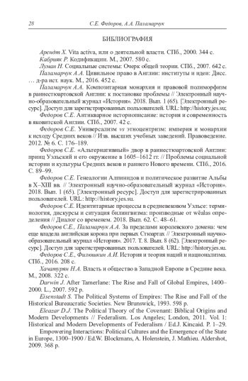 5. Паламарчук А. А. Композитарная монархия и правовой полиморфизм в раннестюартовской Англии: к постановке проблемы // Электронный научно-образовательный жу рнал “История”. 2018. Выл. 1 (65). [Электронный ресурс]. Доступ для зарегистрированных пользователей. URL: http://history.jes.su. EDN: XNZHFJ