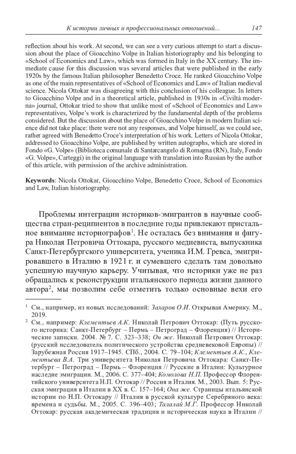 Ключевые фразы: николай оттокар, джоаккино вольпе, бенедетто кроче, экономико-юридическая школа, итальянская историография