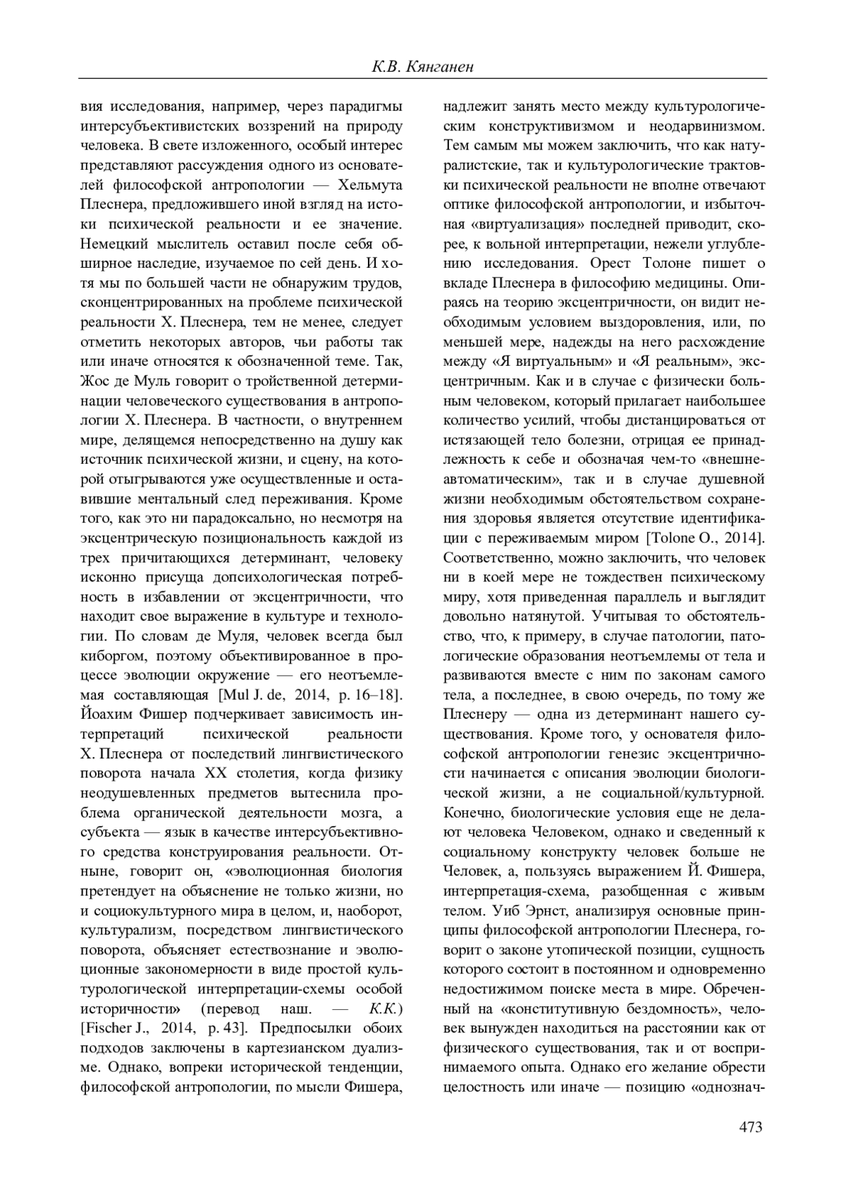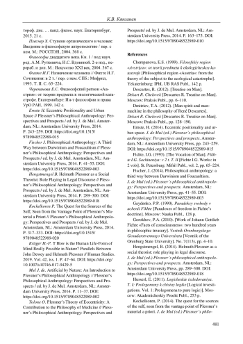 16. Fischer J. Philosophical Anthropology: A Third Way between Darwinism and Foucaultism // Plessner’s Philosophical Anthropology: Perspectives and Prospects / ed. by J. de Mul. Amsterdam, NL: Amsterdam University Press, 2014. P. 41-55. DOI: 10.1515/9789048522989-003