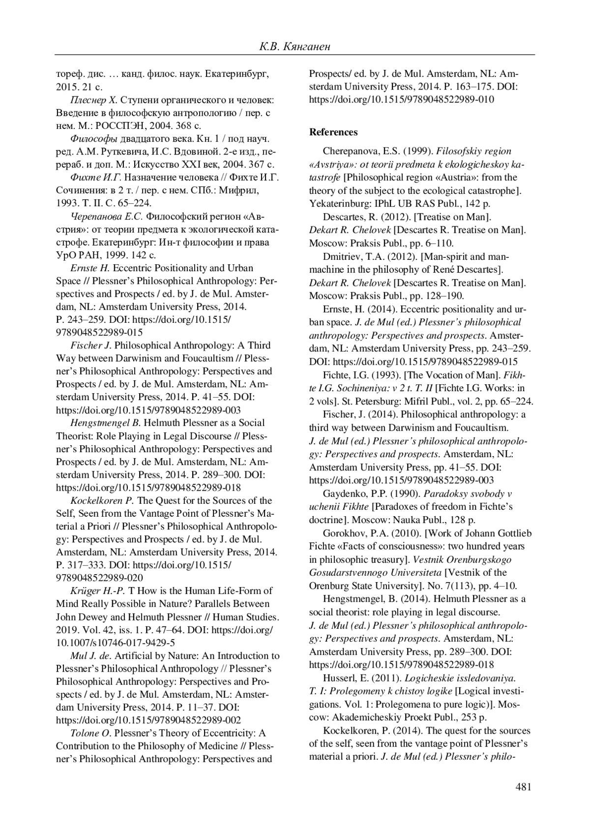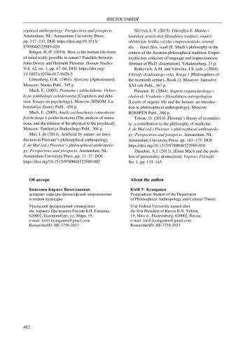 20. Mul J. de. Artificial by Nature: An Introduction to Plessner’s Philosophical Anthropology // Plessner’s Philosophical Anthropology: Perspectives and Prospects / ed. by J. de Mul. Amsterdam, NL: Amsterdam University Press, 2014. P. 11-37. DOI: 10.1515/9789048522989-002