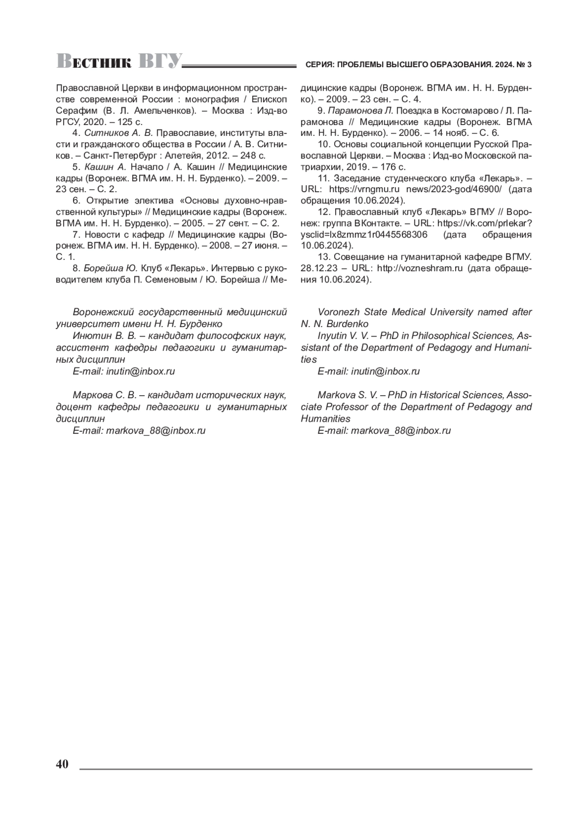 12. Православный клуб “Лекарь” ВГМУ // Воронеж: группа ВКонтакте. - URL: https://vk.com/prlekar?ysclid=lx8zmmz1r0445568306 (дата обращения 10.06.2024).