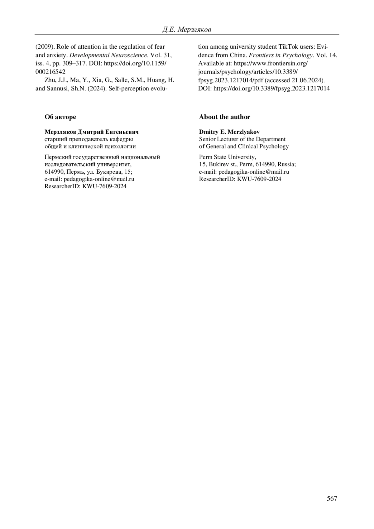 39. Zhu J.J., Ma Y., Xia G., Salle S.M., Huang H., Sannusi Sh.N. Self-perception evolution among university student TikTok users: Evidence from China // Frontiers in Psychology. 2024. Vol. 14. URL: https://www.frontiersin.org/journals/psychology/articles//pdf (accessed: 21.06.2024). DOI: 10.3389/fpsyg.2023.1217014 EDN: BVLOOA