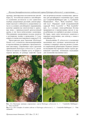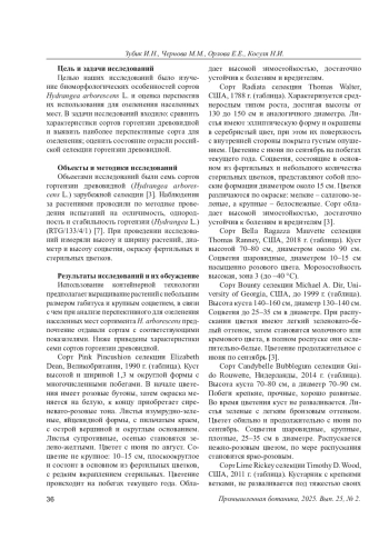 4. Зубик И.Н. Использование гортензии древовидной (Нydrangea arborescens L.) для создания устойчивых садовых композиций // Вестник ландшафтной архитектуры. 2020. N 24. С. 18-21.