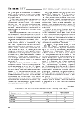 В статье представлены психологические основы изучения феномена счастья, проанализированы различные подходы в определении его содержания и структуры. Изложены результаты эмпирического исследования взаимосвязи счастья и психологических особенностей личности студентов-заочников педагогических направлений подготовки. Установлено, что переживание счастья у них положительно коррелирует с показателями их удовлетворенности жизнью, социабельности и диспозиционного оптимизма.