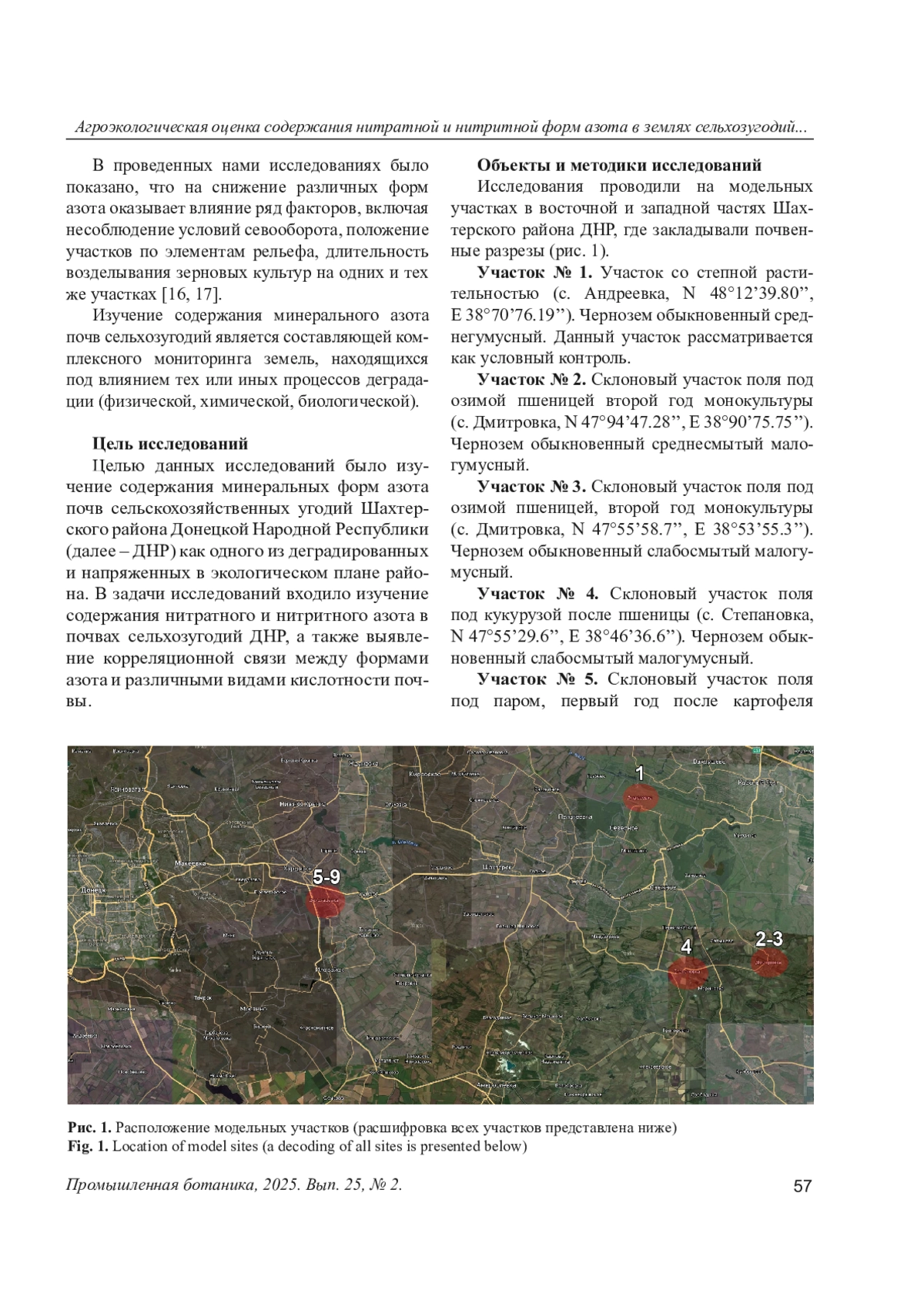 Статья: АГРОЭКОЛОГИЧЕСКАЯ ОЦЕНКА СОДЕРЖАНИЯ НИТРАТНОЙ И НИТРИТНОЙ ФОРМ АЗОТА В ЗЕМЛЯХ СЕЛЬХОЗУГОДИЙ ДОНБАССА (2025)