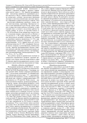 Статья: ПРОДУКТИВНОСТЬ РАСТЕНИЙ HYPERICUM PERFORATUM L. РАЗНОГО ГЕОГРАФИЧЕСКОГО ПРОИСХОЖДЕНИЯ В УСЛОВИЯХ ИНТРОДУКЦИИ НА СЕВЕРЕ (2025)
