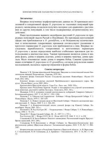 Статья: Морфометрические параметры Oxytropis popoviana Peschkova из природных популяций северо-западного побережья озера Байкал (Иркутская область) (2024)