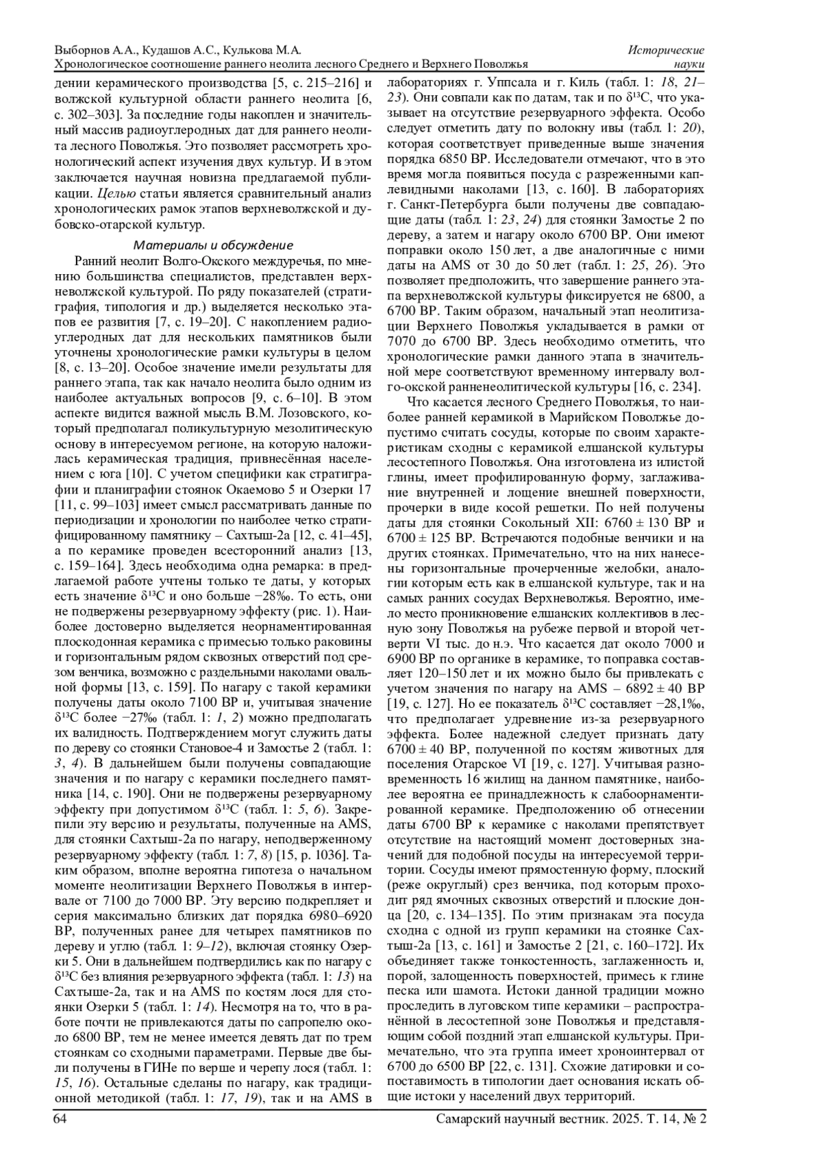 24. Цветкова Н.А. Начало неолитической эпохи на Верхней Волге // Вестник Санкт-Петербургского университета. История. 2019. Т. 64, вып. 2. С. 683-717. DOI: 10.21638/11701/spbu02.2019.215 EDN: IOLWGL