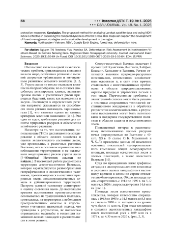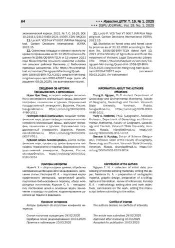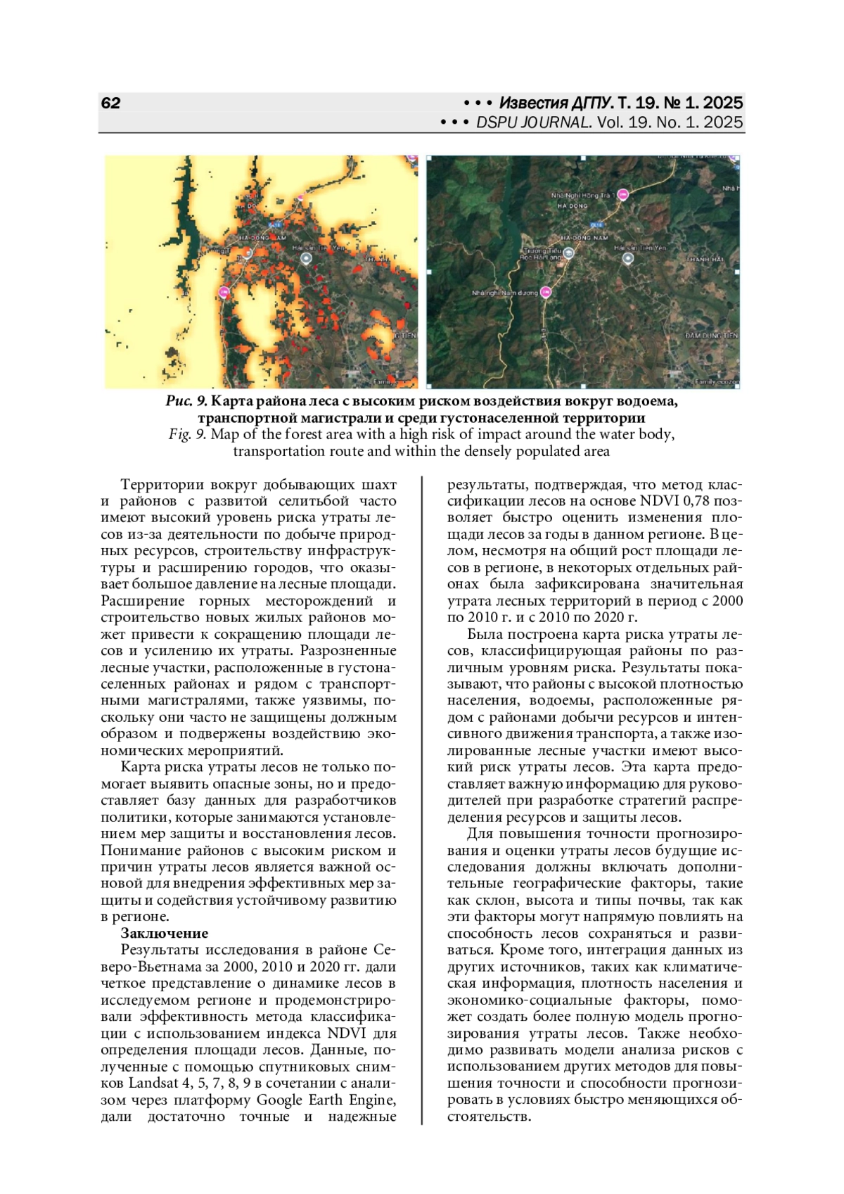 Статья: ОЦЕНКА РИСКА ОБЕЗЛЕСЕНИЯ ТЕРРИТОРИИ СЕВЕРО-ВОСТОЧНОГО ВЬЕТНАМА ПО МАТЕРИАЛАМ ДИСТАНЦИОННОГО ЗОНДИРОВАНИЯ (2025)