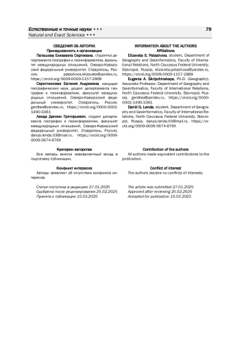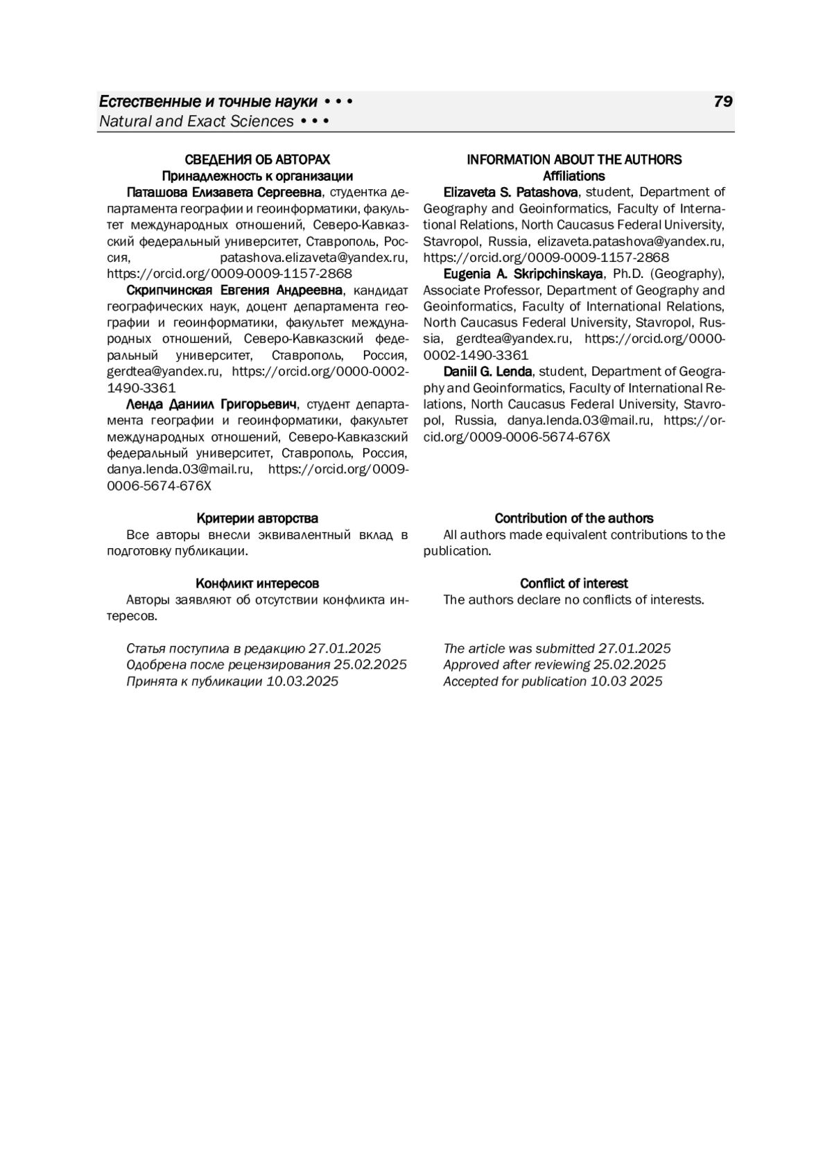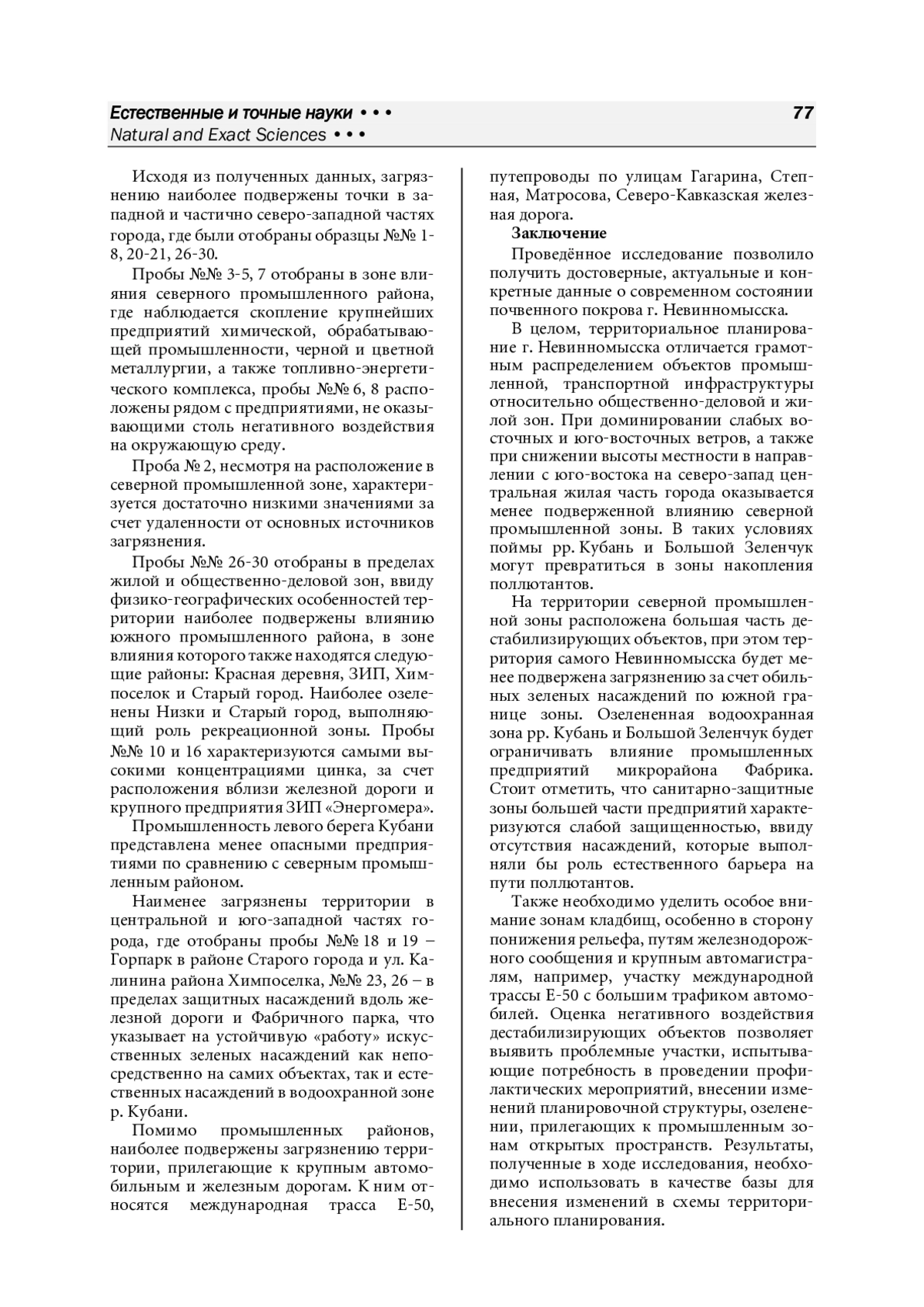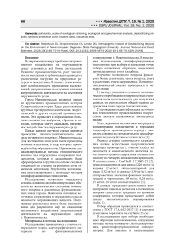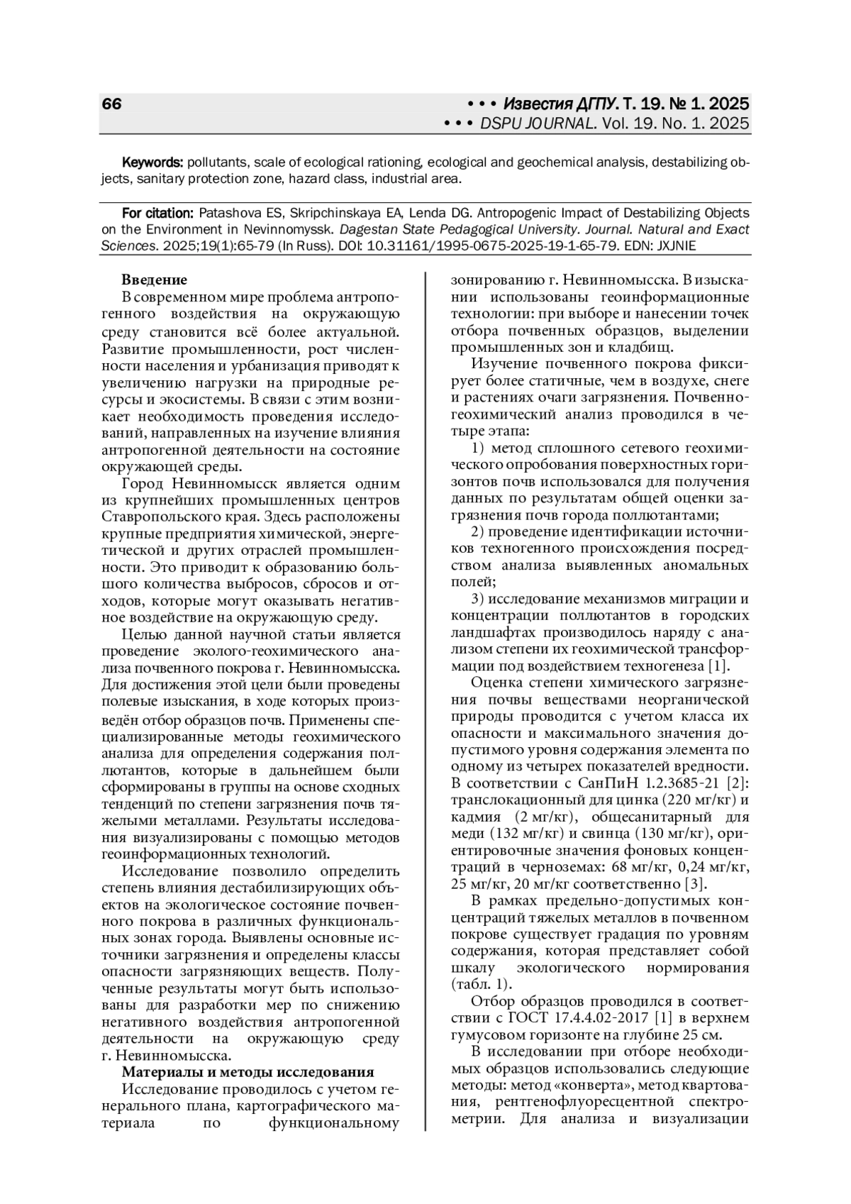 ПАТАШОВА Е. С., СКРИПЧИНСКАЯ Е. А., ЛЕНДА Д. Г. АНТРОПОГЕННОЕ ВОЗДЕЙСТВИЕ ДЕСТАБИЛИЗИРУЮЩИХ ОБЪЕКТОВ НА ОКРУЖАЮЩУЮ СРЕДУ ГОРОДА НЕВИННОМЫССКА // ИЗВЕСТИЯ ДАГЕСТАНСКОГО ГОСУДАРСТВЕННОГО ПЕДАГОГИЧЕСКОГО УНИВЕРСИТЕТА. ЕСТЕСТВЕННЫЕ И ТОЧНЫЕ НАУКИ. 2025. № 1, ТОМ 19