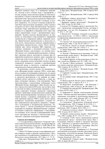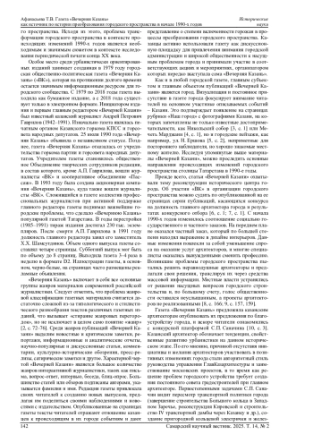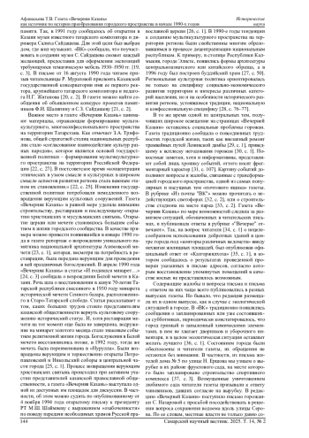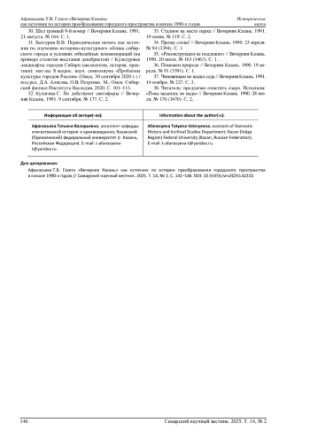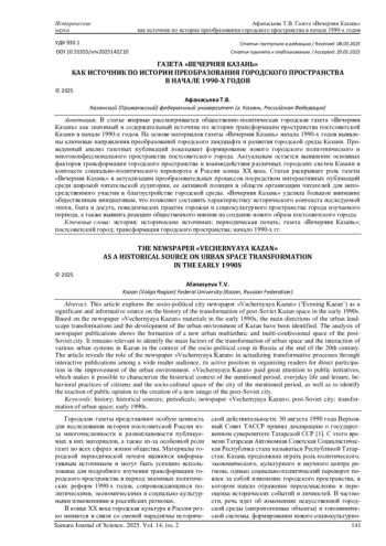 АФАНАСЬЕВА Т. В. ГАЗЕТА «ВЕЧЕРНЯЯ КАЗАНЬ» КАК ИСТОЧНИК ПО ИСТОРИИ ПРЕОБРАЗОВАНИЯ ГОРОДСКОГО ПРОСТРАНСТВА В НАЧАЛЕ 1990-Х ГОДОВ // САМАРСКИЙ НАУЧНЫЙ ВЕСТНИК. 2025. ТОМ 14, № 2