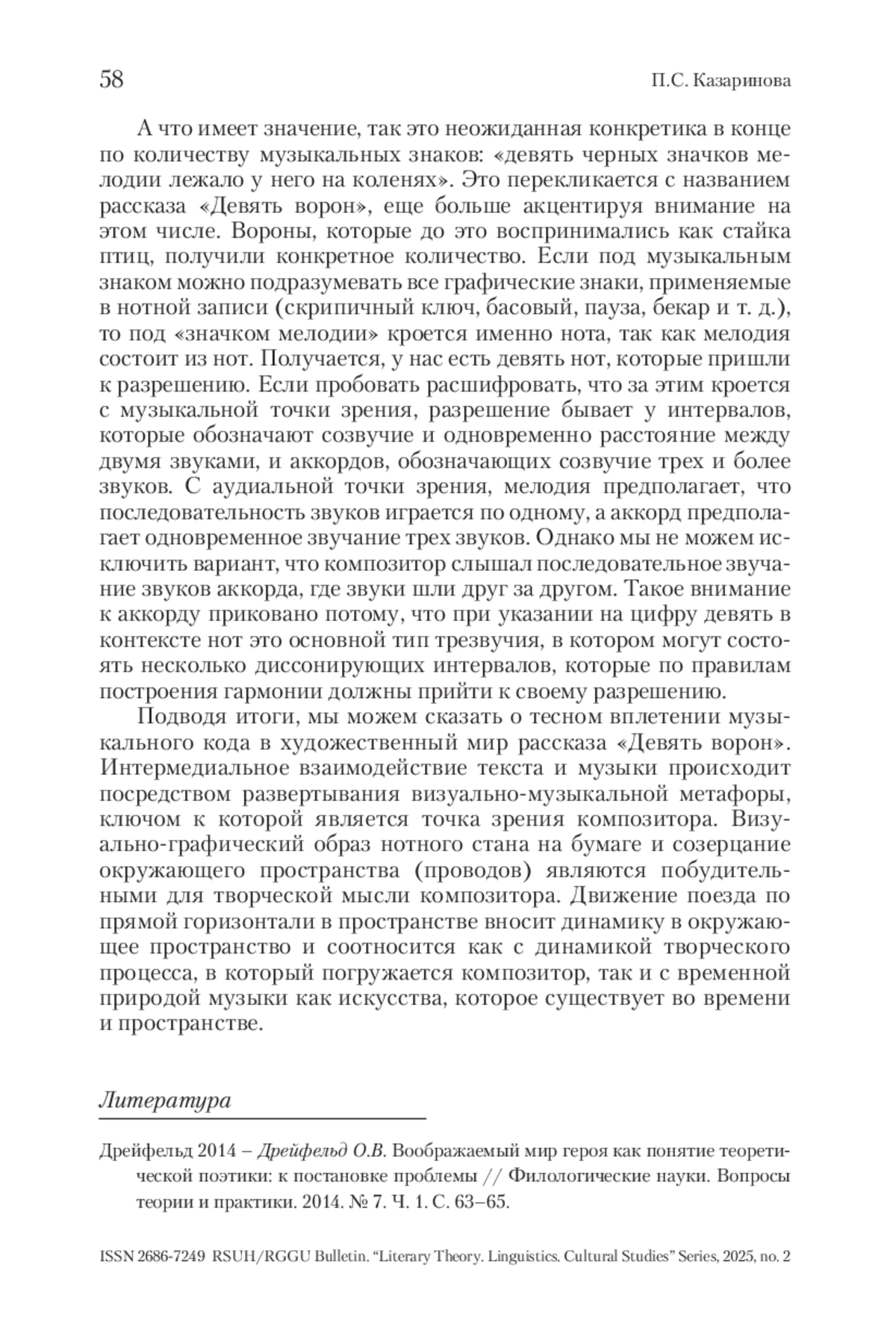 1. Дрейфельд 2014 - Дрейфельд О.В. Воображаемый мир героя как понятие теоретической поэтики: к постановке проблемы // Филологические науки. Вопросы теории и практики. 2014. № 7. Ч. 1. С. 63-65.