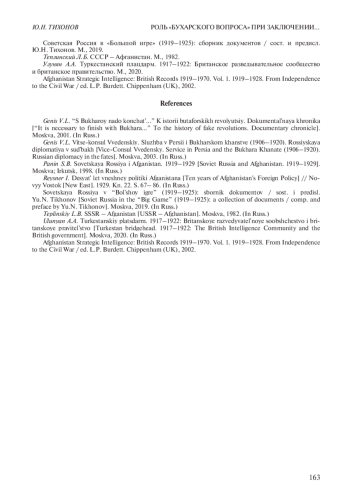 5. Советская Россия в “Большой игре” (1919-1925): сборник документов / сост. и предисл. Ю.Н. Тихонов. М., 2019. EDN: NXUGNQ