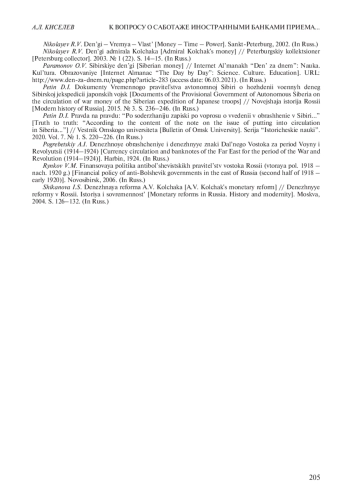 12. Парамонов О.В. Сибирские деньги. Интернет Альманах “День за днем”: Наука. Культура. Образование. URL: http://www.den-za-dnem.ru/page.php?article-283 (дата обращения: 06.03.2021).