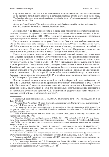19. Старинов И.Г. Добровольцы двух войн: предисловие // Серна Р. Испанцы в Великой Отечественной войне. М., 1986. С. 3-8.