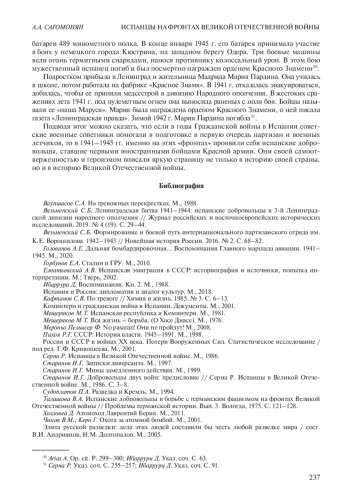 2. Вязьменский С.Б. Ленинградская битва 1941-1944: испанские добровольцы в 3-й Ленинградской дивизии народного ополчения // Журнал российских и восточноевропейских исторических исследований. 2019. № 4 (19). C. 29-44. EDN: MUVHIT