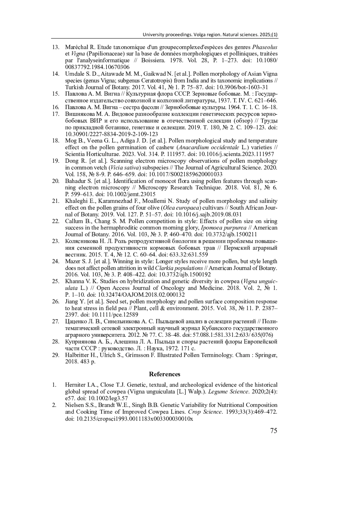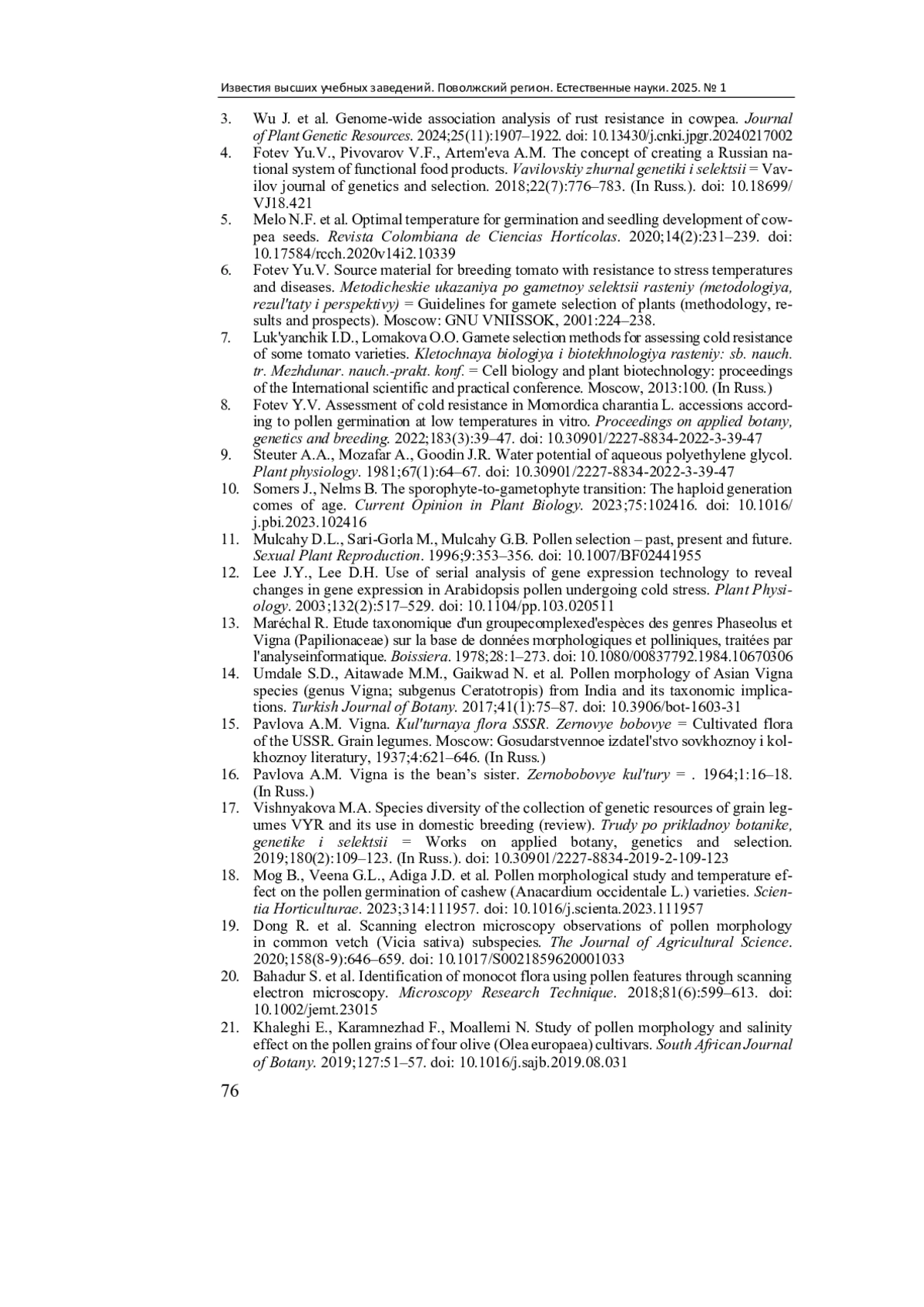 19. Dong R. [et al.]. Scanning electron microscopy observations of pollen morphology in common vetch (Vicia sativa) subspecies // The Journal of Agricultural Science. 2020. Vol. 158, № 8-9. P. 646-659. DOI: 10.1017/S0021859620001033