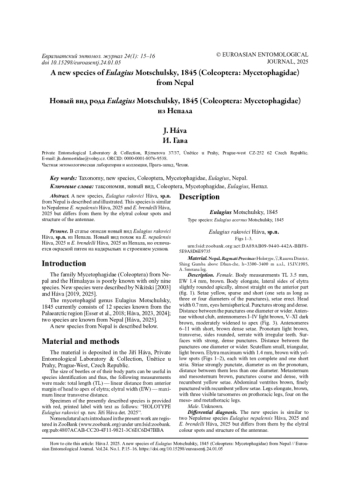 5. Háva J. 2025. Two new species of Eulagius Motschulsky, 1845 discovered from Nepal (Coleoptera: Mycetophagidae) // Munis Entomology & Zoology. Vol.20. No.1. P.1591-1595.