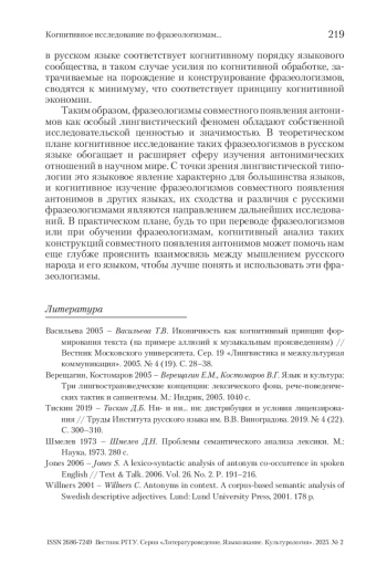 Статья: Когнитивное исследование по фразеологизмам совместного появления антонимов в русском языке (2025)