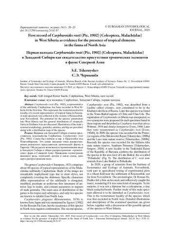 13. Tshernyshev S.E., Sergeev M.E. 2024. Soft-winged flower beetles (Coleoptera, Cleroidea: Malachiidae) of the Sikhote-Alinskii Nature Reserve, the Russian Far East // Euroasian Entomological Journal. Vol.23. No.6. P.337-341. DOI: 10.15298/euroasentj.23.06.07