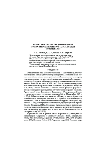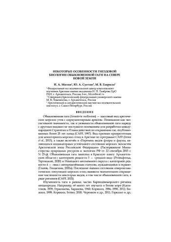 Представлены данные о распространении и биологии размножения гаги обыкновенной на севере архипелага Новая Земля, полученные в результате визуальных наблюдений в 2012–2022 годах и с помощью фотоловушек в 2020–2023 годах. Большинство гаг гнездятся колониями на небольших островах вдоль побережья с плотностью от 0,6 до 50 гнёзд/га; на побережье Северного острова было обнаружено лишь несколько гнёзд (от 0,01 до 0,1 гнёзд/га). Гагары прилетают в регион в конце мая. Инкубационный период длится с начала июня до середины августа из-за того, что самки, потерявшие первую кладку, откладывают яйца повторно. Большинство самцов покидают колонии к концу июня. Сроки отлёта гагар из региона неизвестны; некоторые из них встречаются там даже в середине октября. На кладки охотятся большой поморник ( Stercorarius skua ), сизая чайка ( Larus hyperboreus ), большая чёрная чайка ( L. marinus ) и белый медведь ( Ursus maritimus ). Хищничество песца ( Alopex lagopus ) незначительно, поскольку в период гнездования морские острова с колониями гаг для них недоступны. На успешность гнездования также влияет деятельность человека (туризм и визиты сотрудников национального парка «Русская Арктика»), которая приводит к беспокойству насиживающих птиц и способствует распространению хищников. Для оценки численности и динамики обыкновенной гаги в регионе в целом необходимо обследовать другие потенциальные места гнездования и вести постоянный мониторинг в регионе. Следует ограничить деятельность человека в местах гнездования.