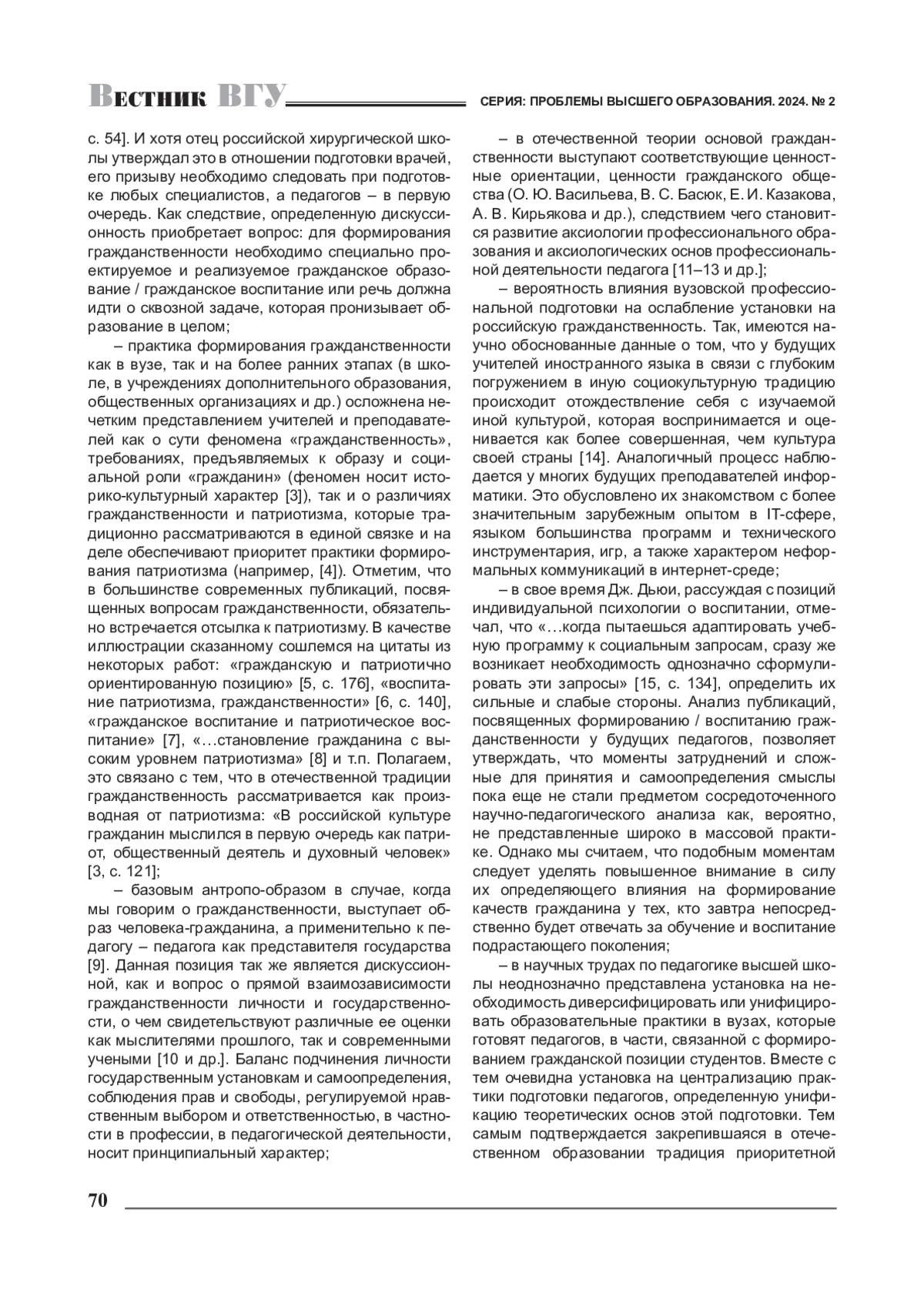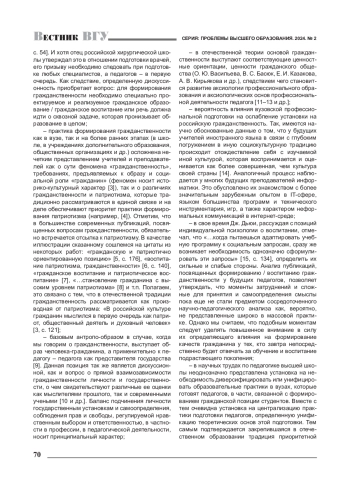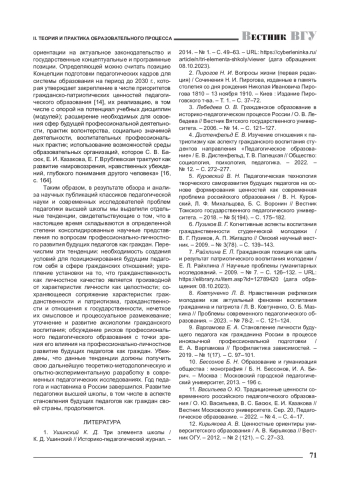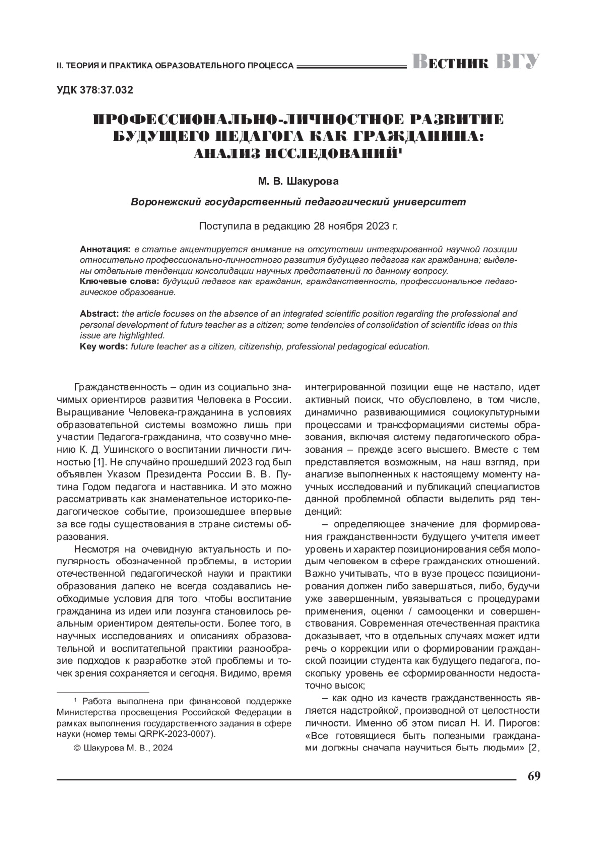 ШАКУРОВА М. В. ПРОФЕССИОНАЛЬНО-ЛИЧНОСТНОЕ РАЗВИТИЕ БУДУЩЕГО ПЕДАГОГА КАК ГРАЖДАНИНА: АНАЛИЗ ИССЛЕДОВАНИЙ // ВЕСТНИК ВОРОНЕЖСКОГО ГОСУДАРСТВЕННОГО УНИВЕРСИТЕТА. СЕРИЯ: ПРОБЛЕМЫ ВЫСШЕГО ОБРАЗОВАНИЯ. 2024. № 2