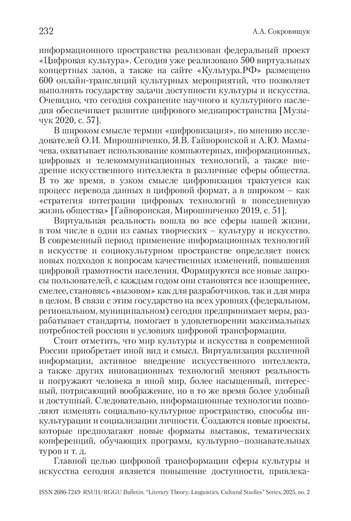 11. Музычук 2020 - Музычук В.Ю. Основные направления цифровизации в сфере культуры: зарубежный опыт и российские реалии // Вестник Института экономики Российской академии наук. 2020. № 5. С. 49-63.