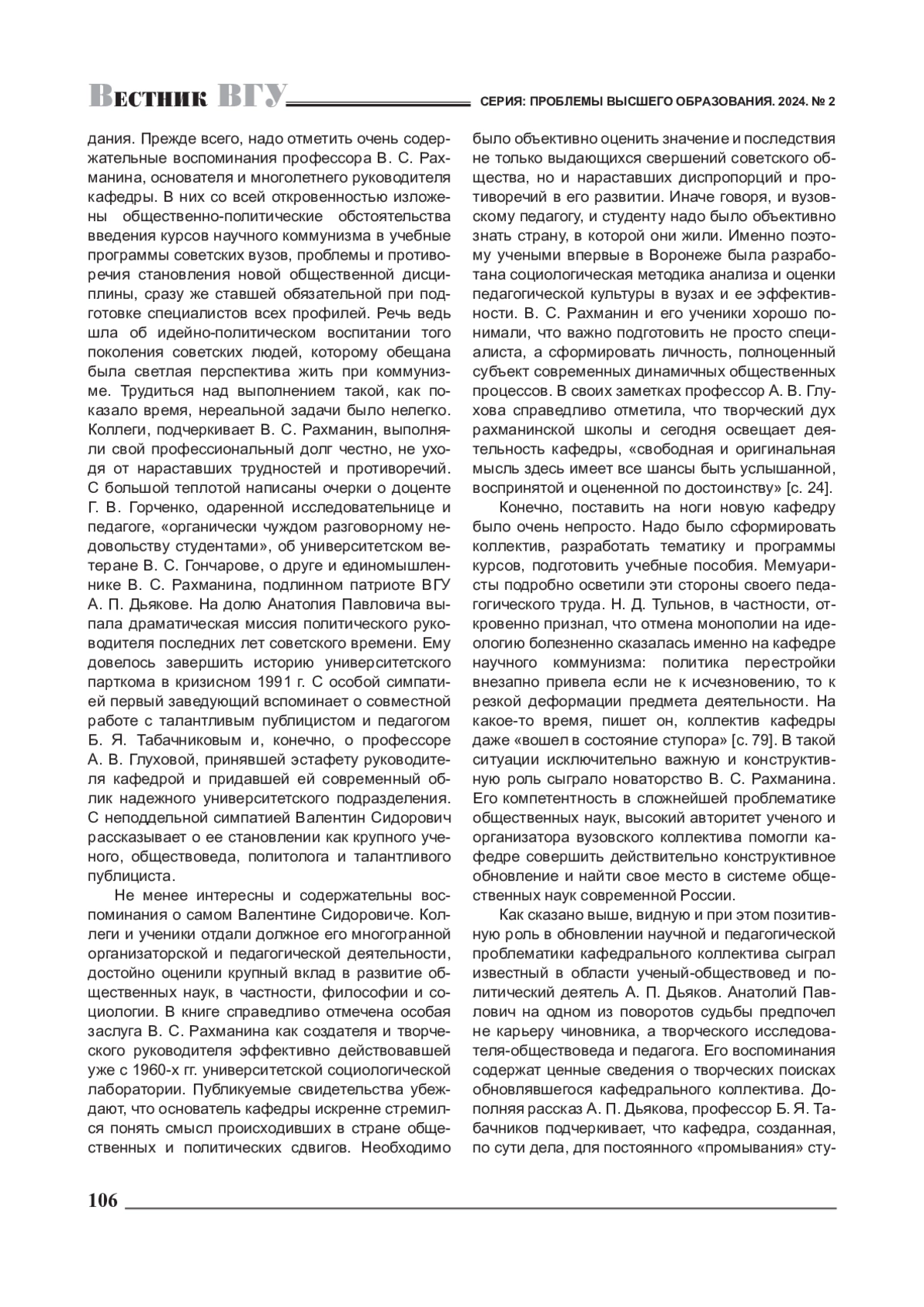 В феврале 2023 г. кафедрой социологии и политологии исторического факультета Воронежского государственного университета был проведен круглый стол, посвященный трансформации системы высшего образования в Российской Федерации. Был затронут ряд важных проблем, связанных с нынешним состоянием системы высшего образования и возможными результатами ее реформирования