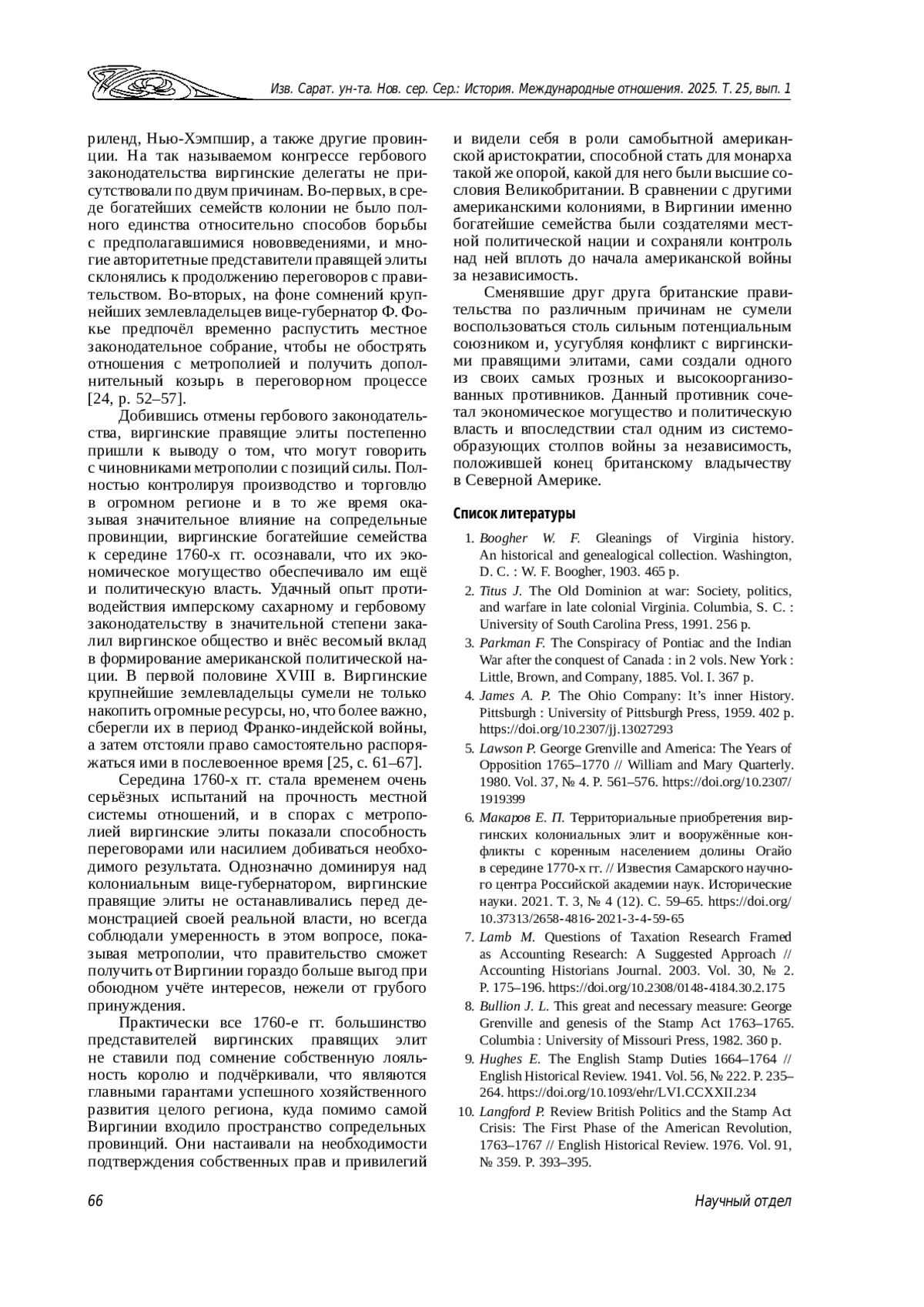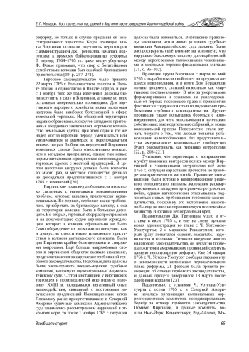 25. Макаров Е. П. Историческое значение Закона о патоке 1733 г. в политико-экономической жизни Виргинии XVIII в. // История государства и права. 2021. № 5. С. 61-67. DOI: 10.18572/1812-3805-2021-5-61-67 EDN: KVIIEX