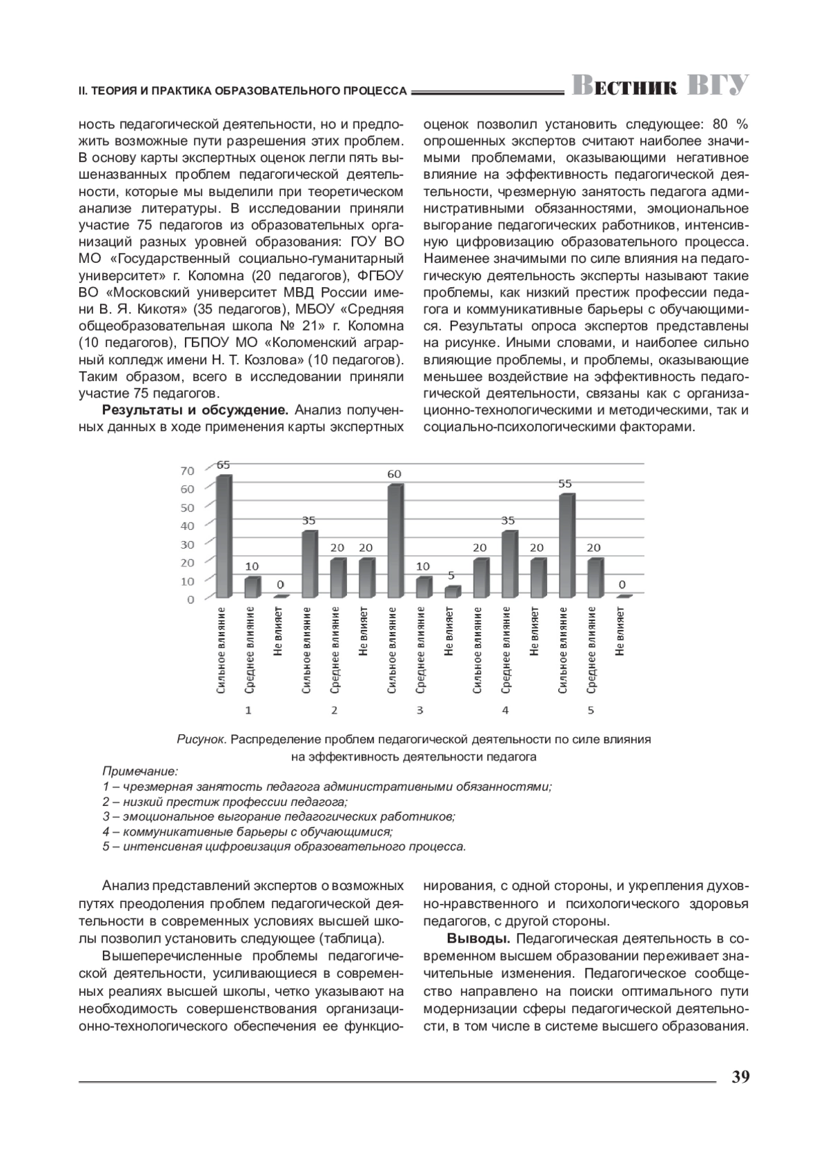 В настоящее время в связи с изменениями, которые происходят не только в обществе, но и в системе высшего образования, требования к преподавателям высшей школы значительно выросли. Педагоги сталкиваются с большим количеством проблем в профессиональной деятельности, связанных не только с выполнением своих обязанностей, но и с отношением общества к данной профессии [2].