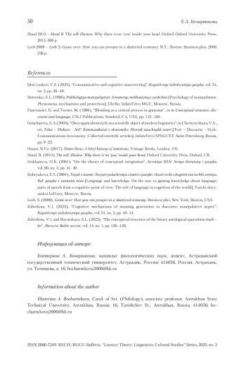 4. Заботкина 2023 - Заботкина В.И. Когнитивные механизмы смыслопорождения в дискурсе: манипулятивный аспект // Когнитивные исследования языка. Вып. 3 (54). 2023. С. 40-44.