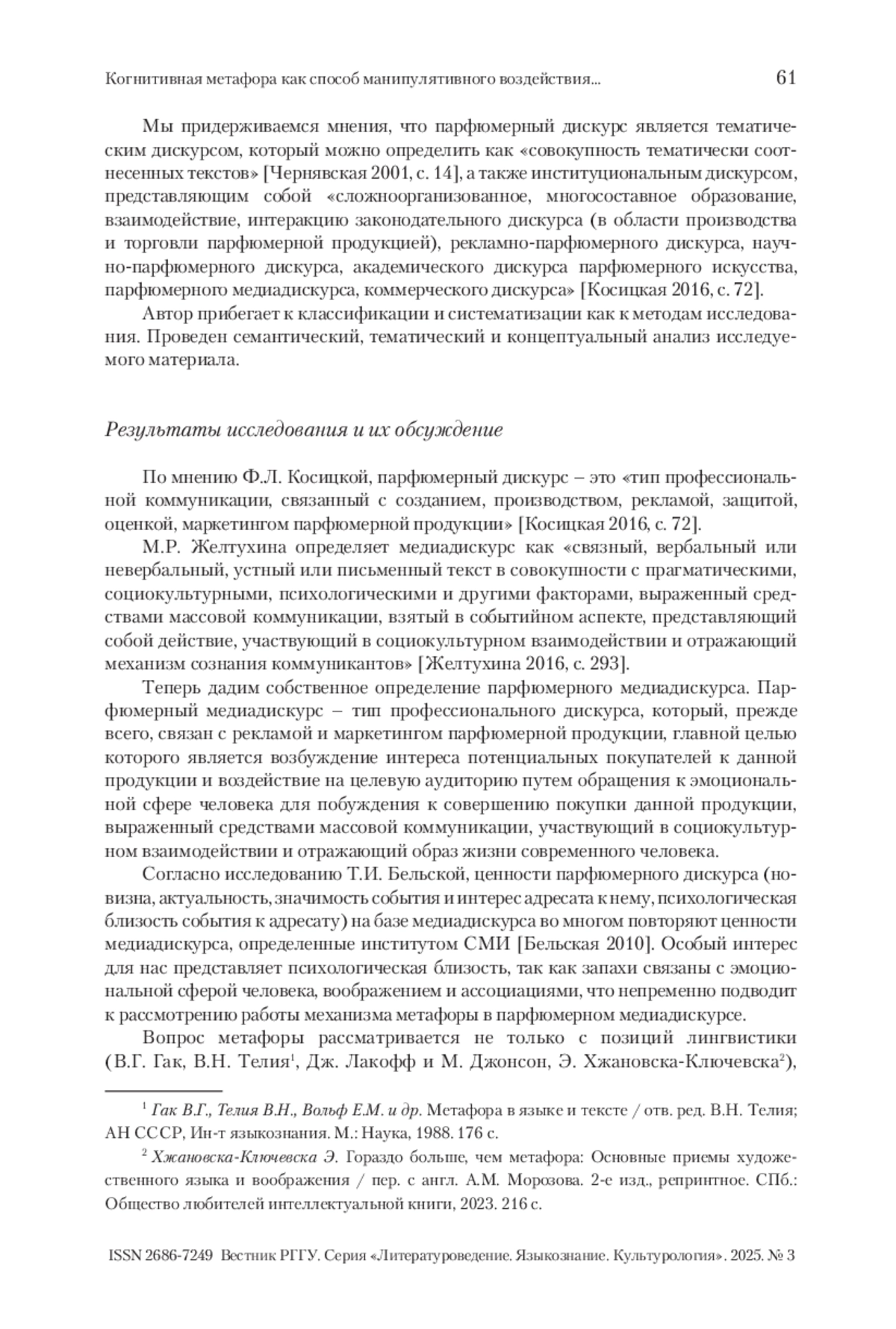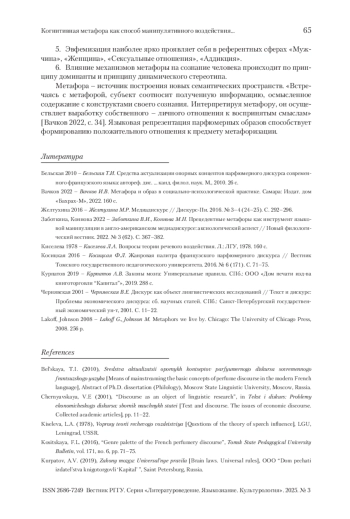 Статья: Когнитивная метафора как способ манипулятивного воздействия (на примере парфюмерного дискурса) (2025)