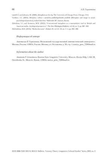 Журнал: ВЕСТНИК РГГУ. СЕРИЯ «ЛИТЕРАТУРОВЕДЕНИЕ. ЯЗЫКОЗНАНИЕ. КУЛЬТУРОЛОГИЯ»