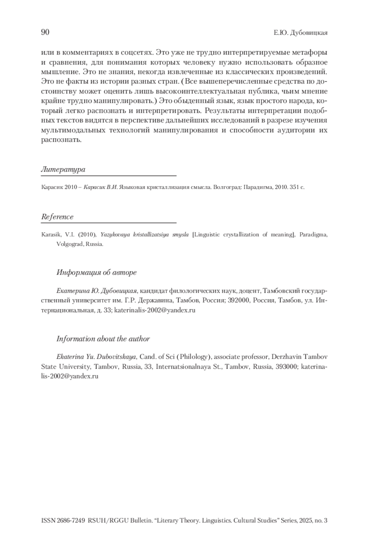 1. Карасик 2010 - Карасик В.И. Языковая кристаллизация смысла. Волгоград: Парадигма, 2010. 351 с.