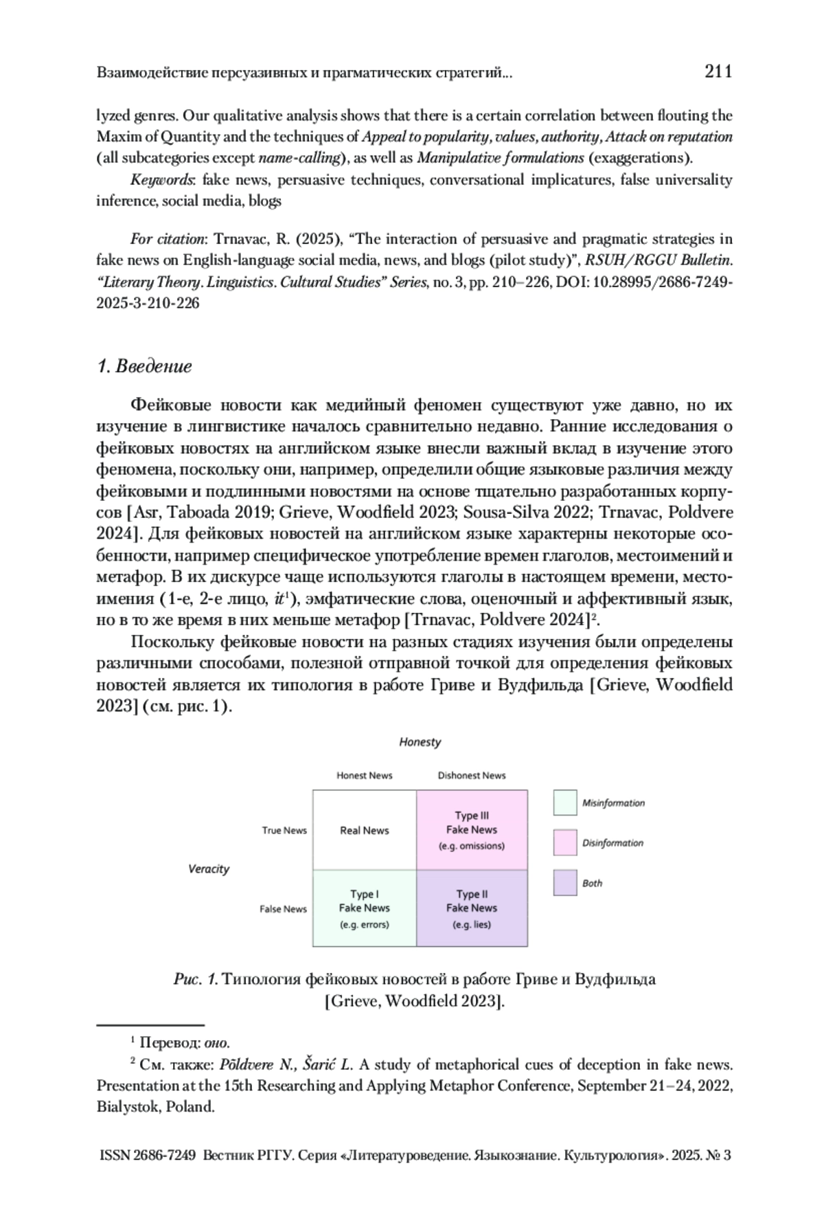 14. Trnavac, Poldvere 2024 - Trnavac R., Poldvere N. Investigating appraisal and the language of evaluation in fake news corpora // Corpus Pragmatics. 2024. Vol. 8. No. 2. P. 107-130.