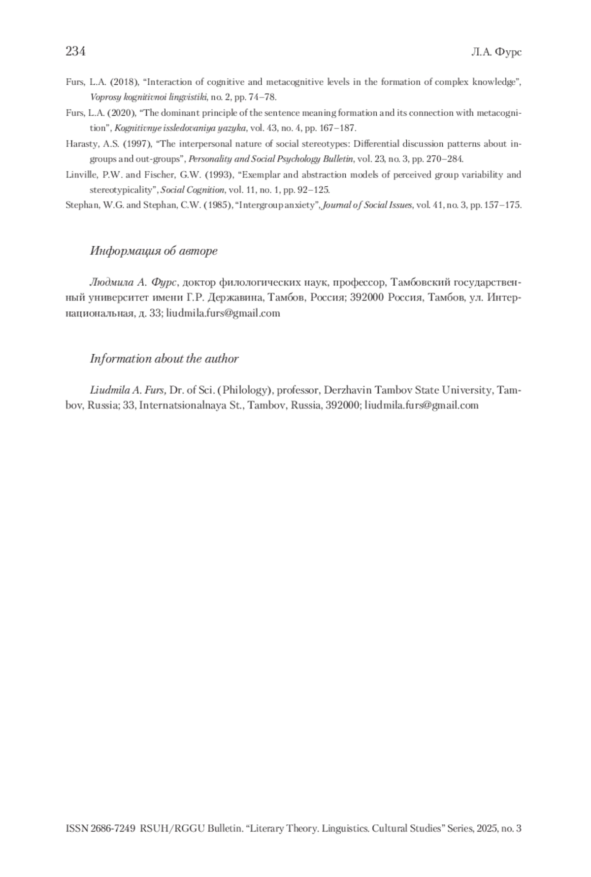 4. Фурс 2020 - Фурс Л.А. Доминантный принцип формирования смысла предложения и его связь с метакогницией // Когнитивные исследования языка. 2020. № 4 (43). С. 167-187.