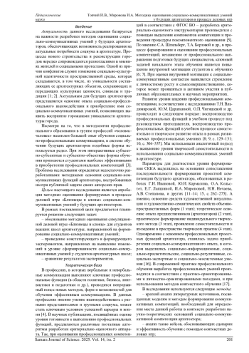 Статья: МЕТОДИКА ОЦЕНИВАНИЯ СОЦИАЛЬНО-КОММУНИКАТИВНЫХ УМЕНИЙ У БУДУЩИХ АРХИТЕКТОРОВ В ПРОЦЕССЕ ДЕЛОВЫХ ИГР (2025)
