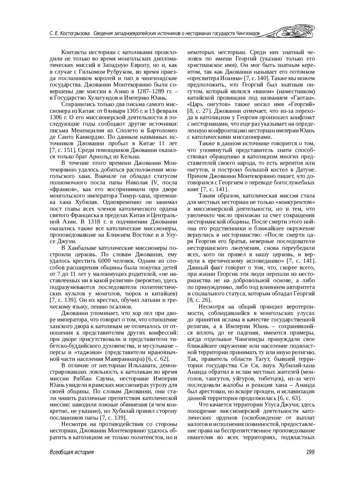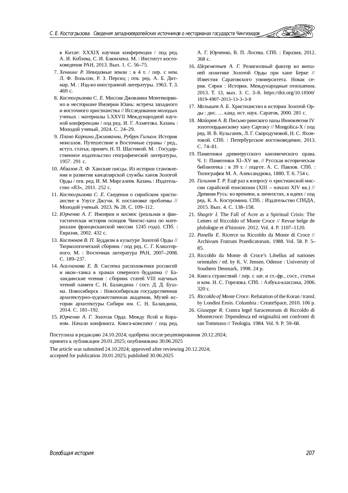 Статья: СВЕДЕНИЯ ЗАПАДНОЕВРОПЕЙСКИХ ИСТОЧНИКОВ О НЕСТОРИАНАХ ГОСУДАРСТВ ЧИНГИЗИДОВ ВО ВТОРОЙ ПОЛОВИНЕ XIII - НАЧАЛЕ XIV ВЕКА (2025)