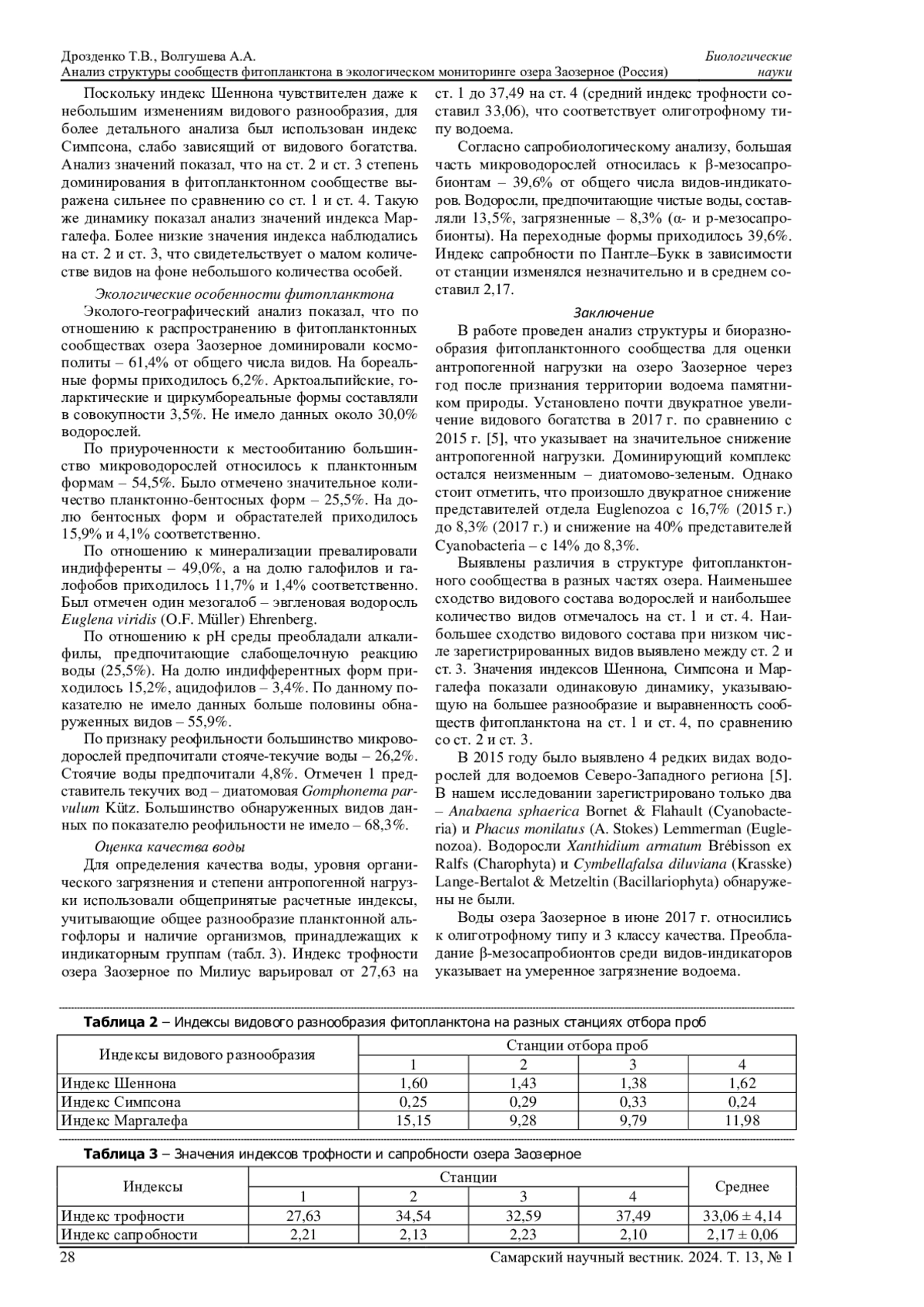 8. Дрозденко Т.В. Фитопланктон как индикатор экологического состояния водоема (на примере озера Барское, Псковская область) // Известия Саратовского университета. Нов. сер. Сер. Химия. Биология. Экология. 2018. Т. 18, вып. 2. С. 225-231. DOI: 10.18500/1816-9775-2018-18-2-225-231 EDN: XSMONV