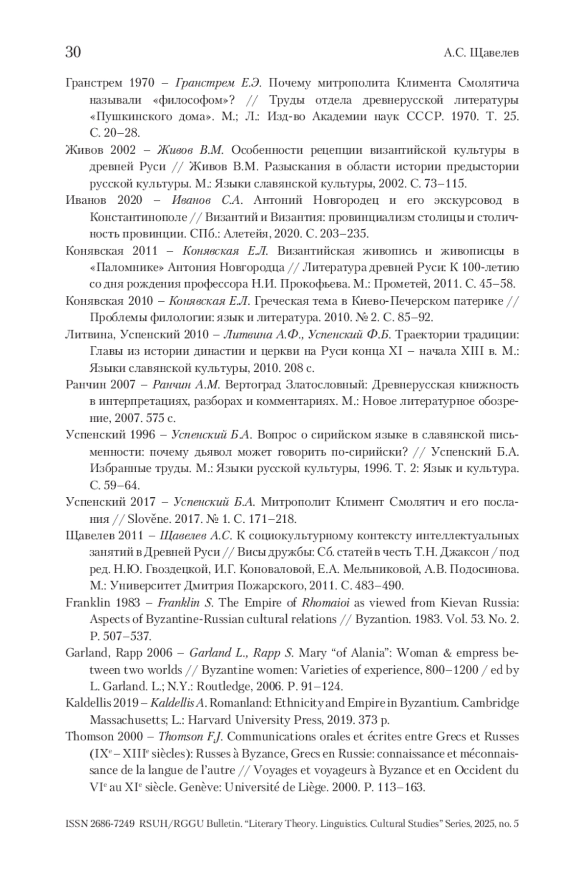 12. Щавелев 2011 - Щавелев А.С. К социокультурному контексту интеллектуальных занятий в Древней Руси // Висы дружбы: Сб. статей в честь Т.Н. Джаксон / под ред. Н.Ю. Гвоздецкой, И.Г. Коноваловой, Е.А. Мельниковой, А.В. Подосинова. М.: Университет Дмитрия Пожарского, 2011. С. 483-490.