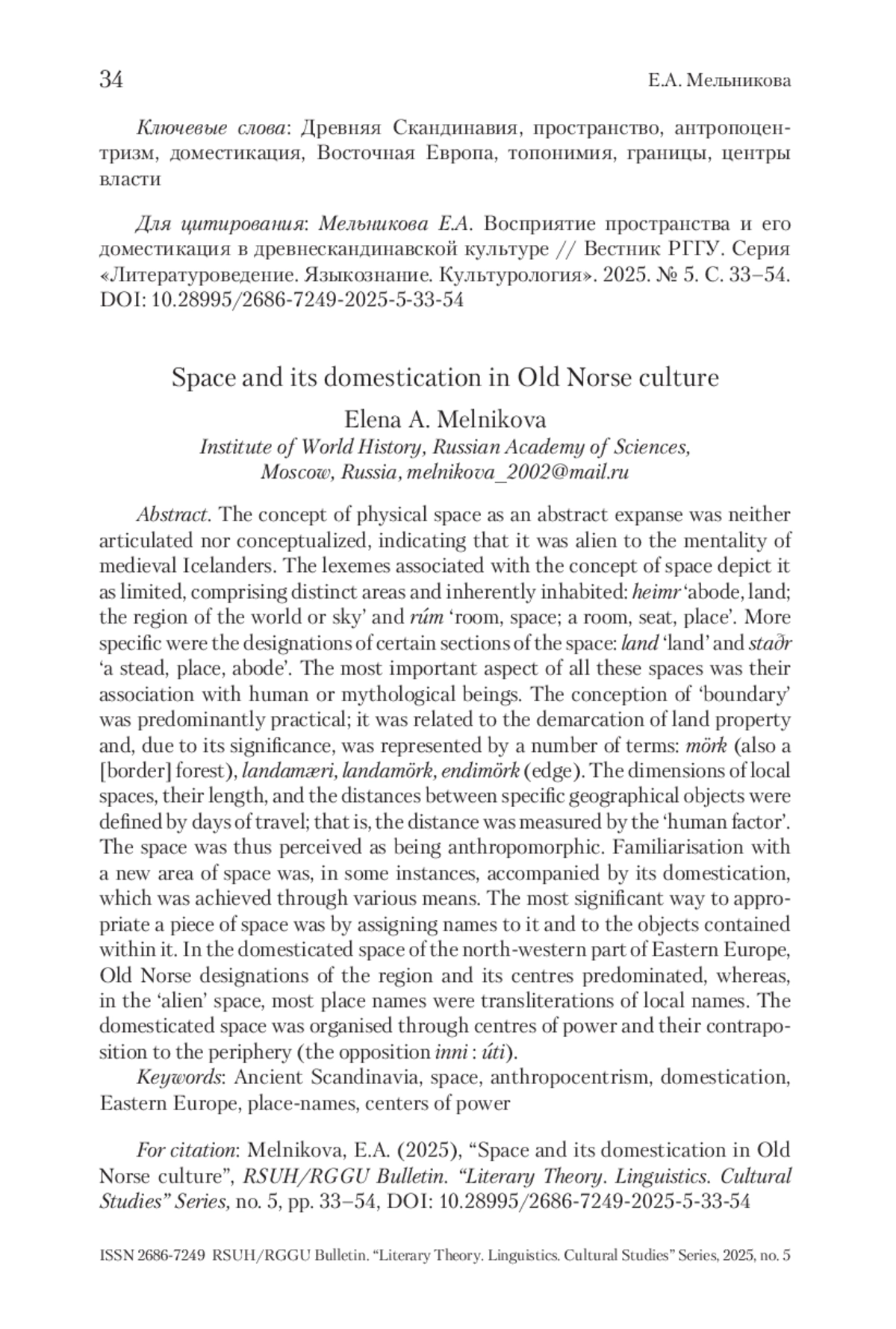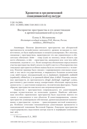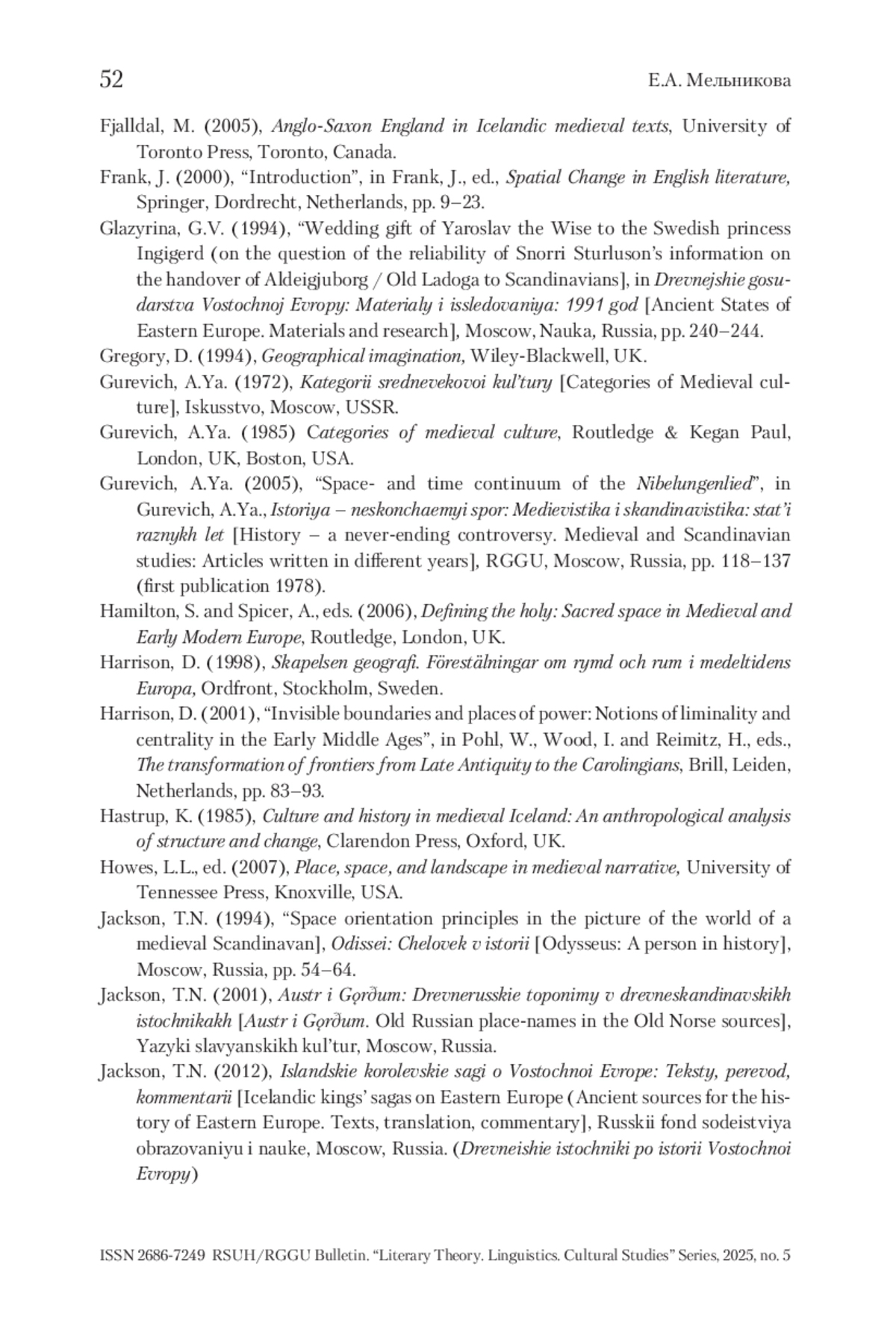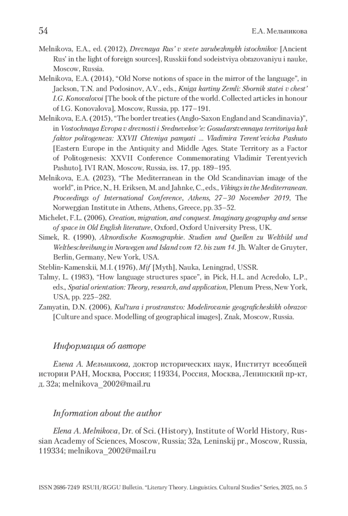 21. Мельникова 2014 - Мельникова Е.А. Древнескандинавские представления о пространстве в зеркале языка // Книга картины Земли: Сб. статей в честь И.Г. Коноваловой / отв. ред. Т.Н. Джаксон, А.В. Подосинов. М., 2014. С. 177-191.