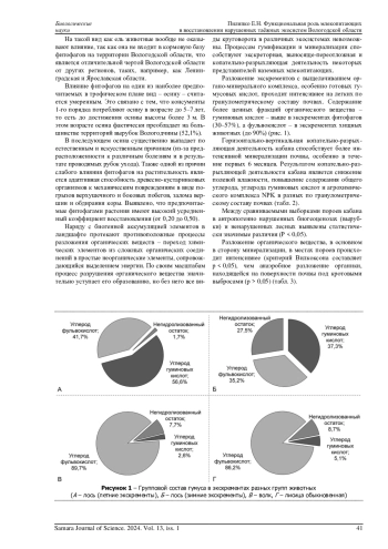 Ключевые фразы: лесной биогеоценоз, антропогенно нарушенные экосистемы, Вологодская область, средообразующая деятельность, трофо-механическая деятельность, экскреторная деятельность, выносяще-переотложная деятельность, копательно-разрыхляющая деятельность