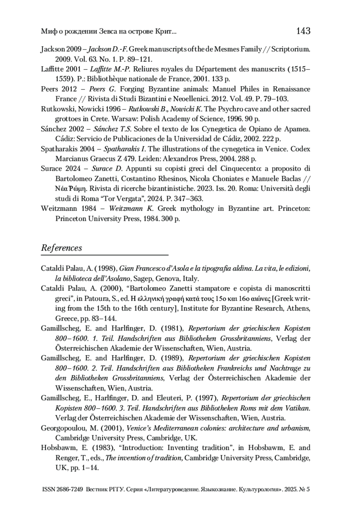 14. Surace 2024 - Surace D. Appunti su copisti greci del Cinquecento: a proposito di Bartolomeo Zanetti, Costantino Rhesinos, Nicola Choniates e Manuele Baclas // Νέα ̔Ρώμη. Rivista di ricerche bizantinistiche. 2023. Iss. 20. Roma: Università degli studi di Roma “Tor Vergata”, 2024. P. 347-363.