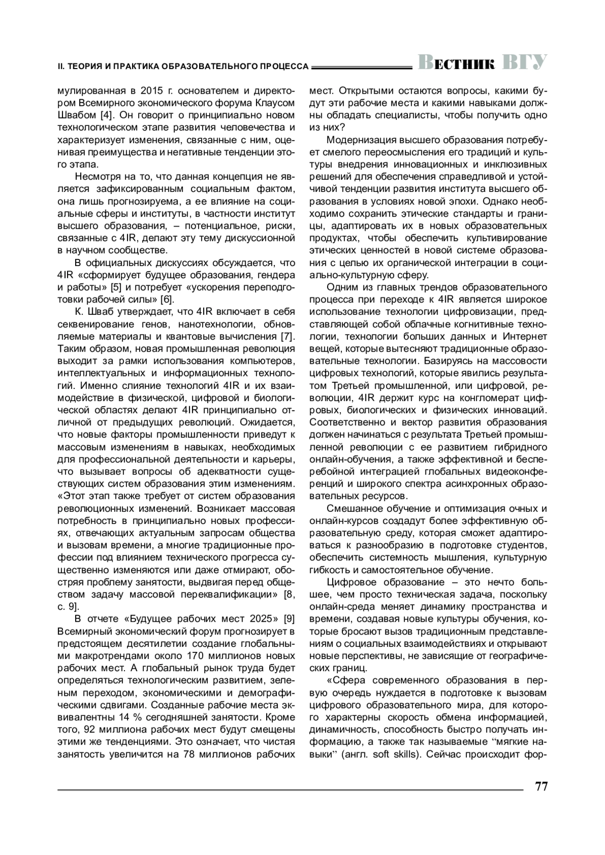 10. Корзина М. И. Роль образования в эпоху четвертой промышленной революции (социально-философский анализ) / М. И. Корзина // Грамота - 2020. - Т. 13, вып. 10. - С. 186-192.