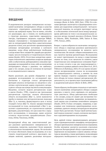1. Раицкая, Л.К., & Тихонова, Е.В. (2019). Обзор как перспективный вид научной публикации, его типы и характеристики. Научный редактор и издатель, 4(3-4), 131-139. DOI: 10.24069/2542-0267-2019-3-4-131-139 EDN: NZINIC